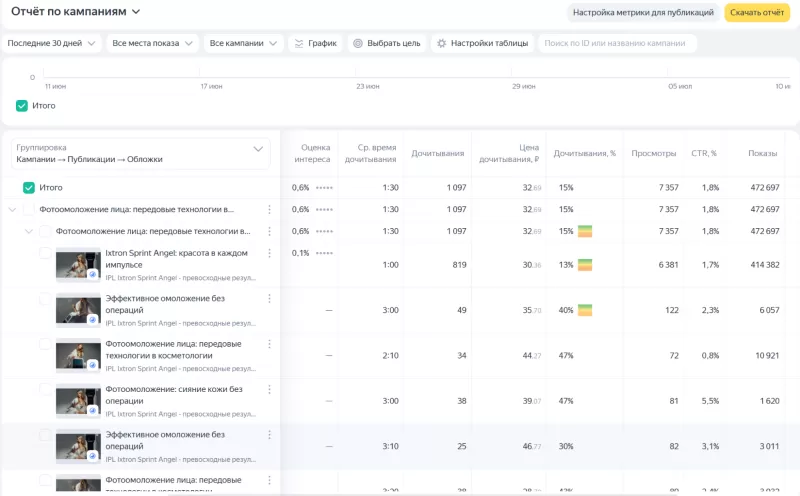 По нашему опыту, минимальный рабочий бюджет — 50 000 рублей в месяц. При этих суммах мы запускаем проекты и получаем результаты. В зависимости от ниши, CTR ПромоСтраниц варьируется от 0,8 до 5,5%.