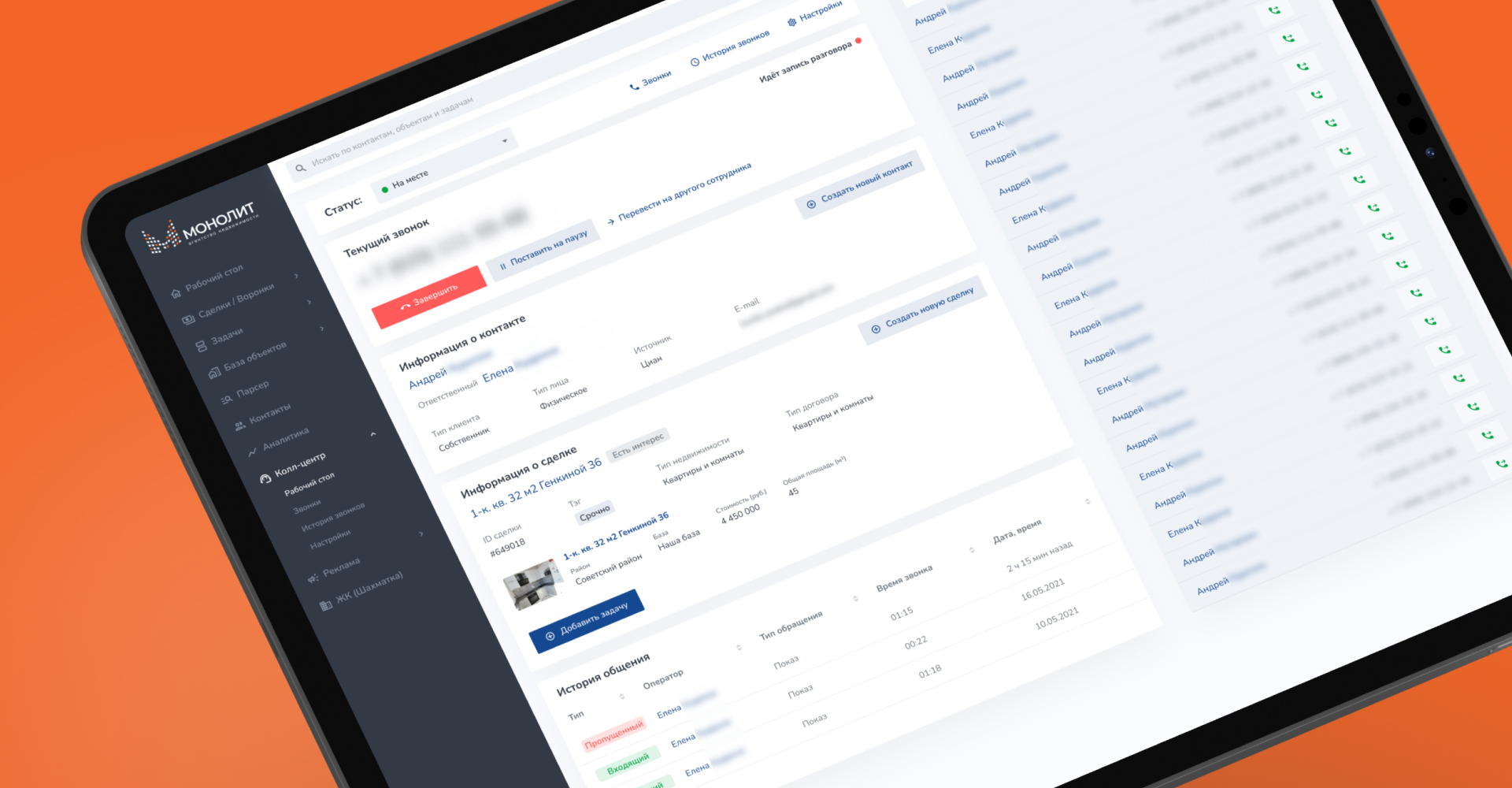 По запросу агентства недвижимости во время разработки CRM мы встроили решение для контроля звонков и работы менеджеров с клиентами.