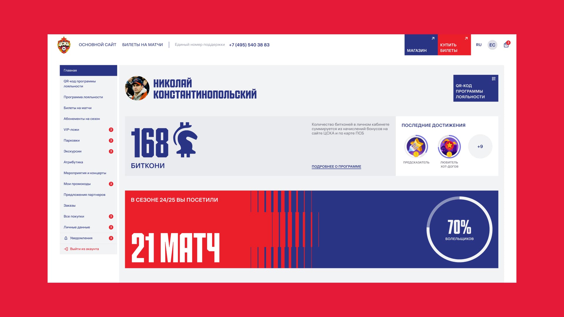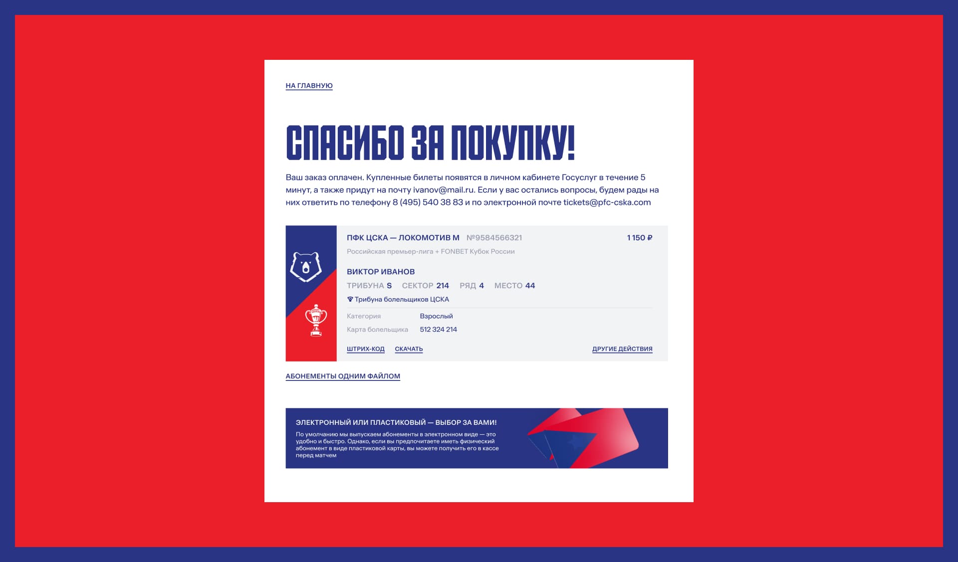 Разработали официальный портал ПФК ЦСКА, билетный сайт и личный кабинет болельщик