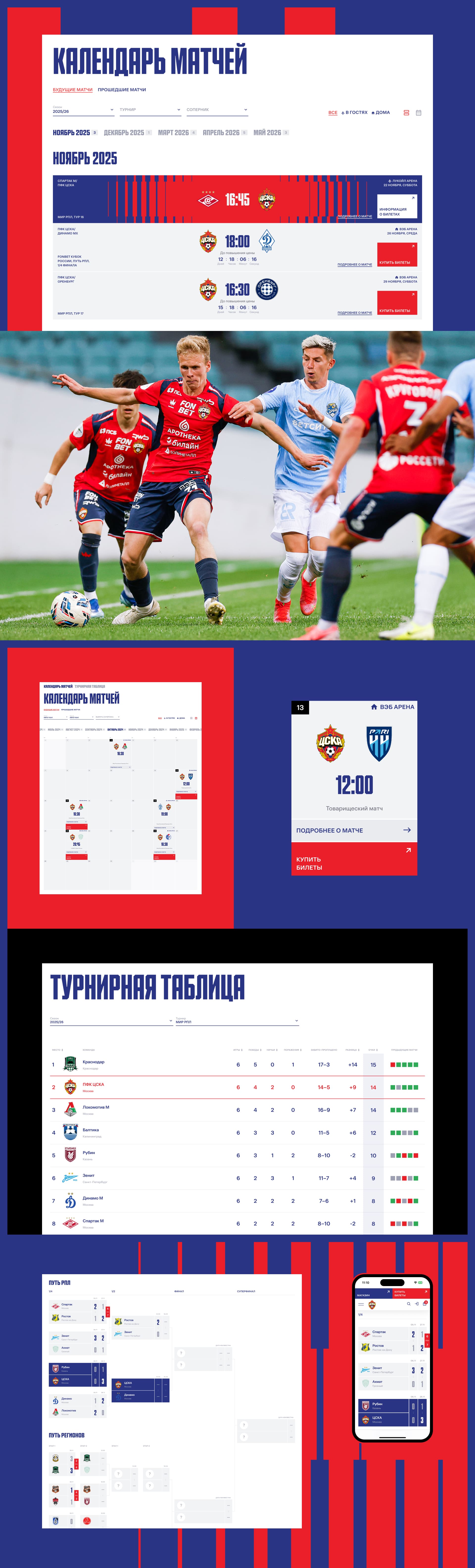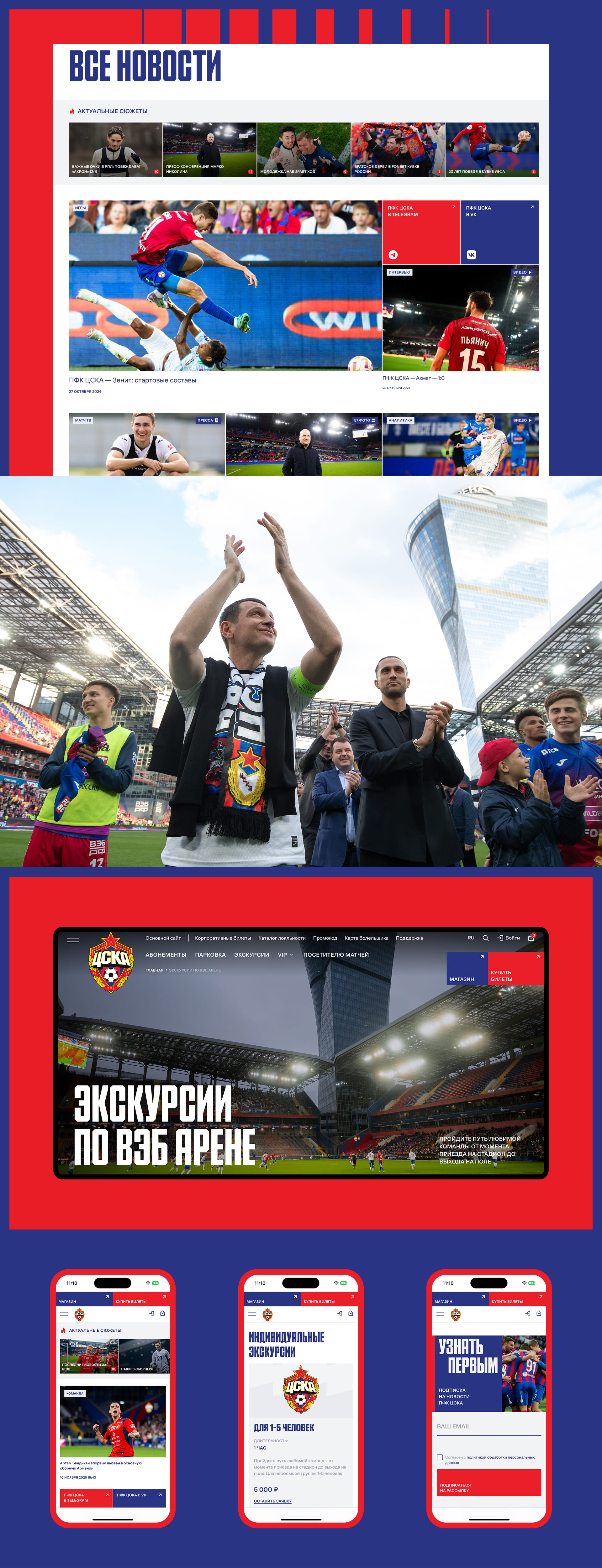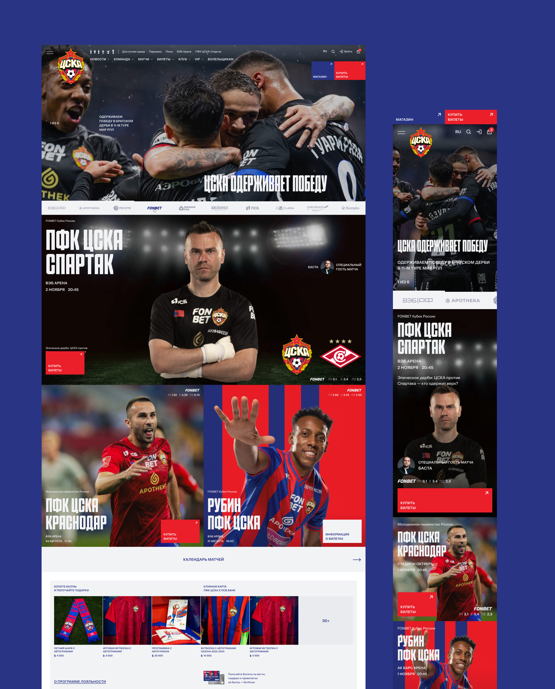 Мы создали более 1000 макетов с адаптивами для разных браузеров устройств. Дизайн сайтов экосистемы ЦСКА сохраняет характер бренда и делает цифровые сервисы понятными и удобными.