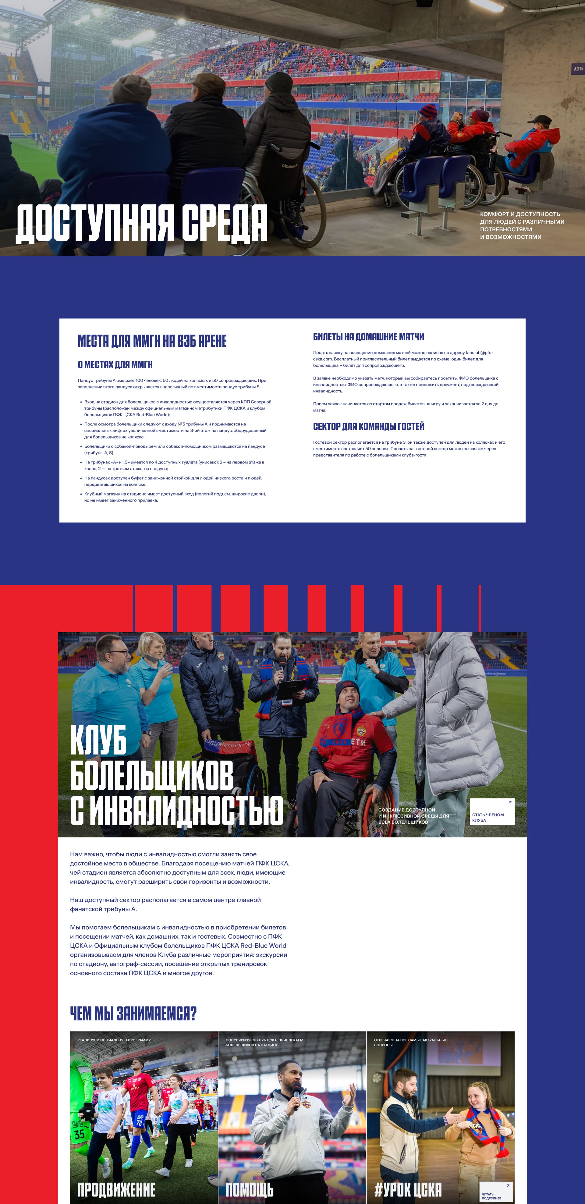 - Создали отдельные информационные разделы — «Доступная среда» и «Клуб болельщиков ЦСКА с инвалидностью».