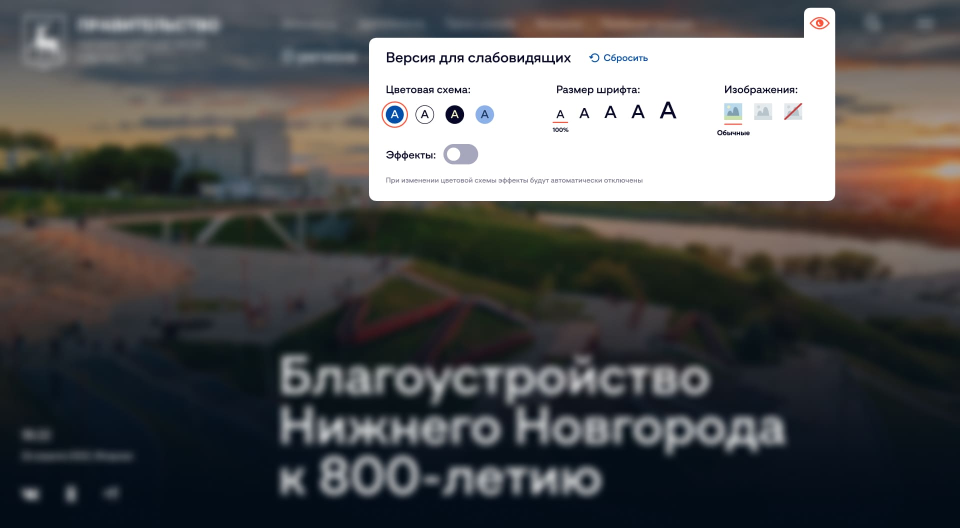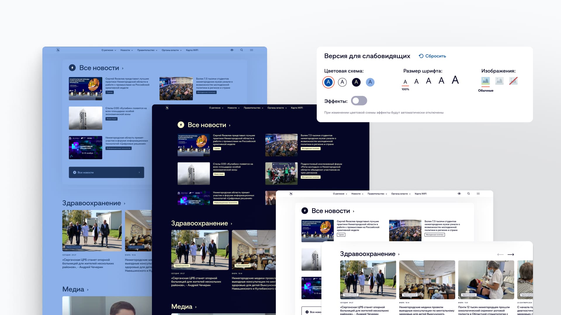 К примеру, мы решили эту задачу на сайте Правительства Нижегородской области. По разработке мы опирались на принципы проектирования сайта для людей с ограниченными возможностями и на обязательные требования — сайт по ГОСТу Р 52872-2019 должен быть доступен для людей с ОВЗ.