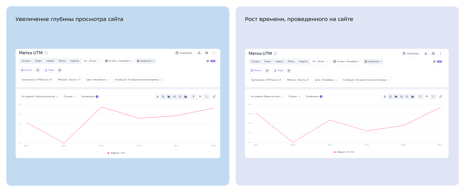 - время на сайте — 2 минуты 14 секунд