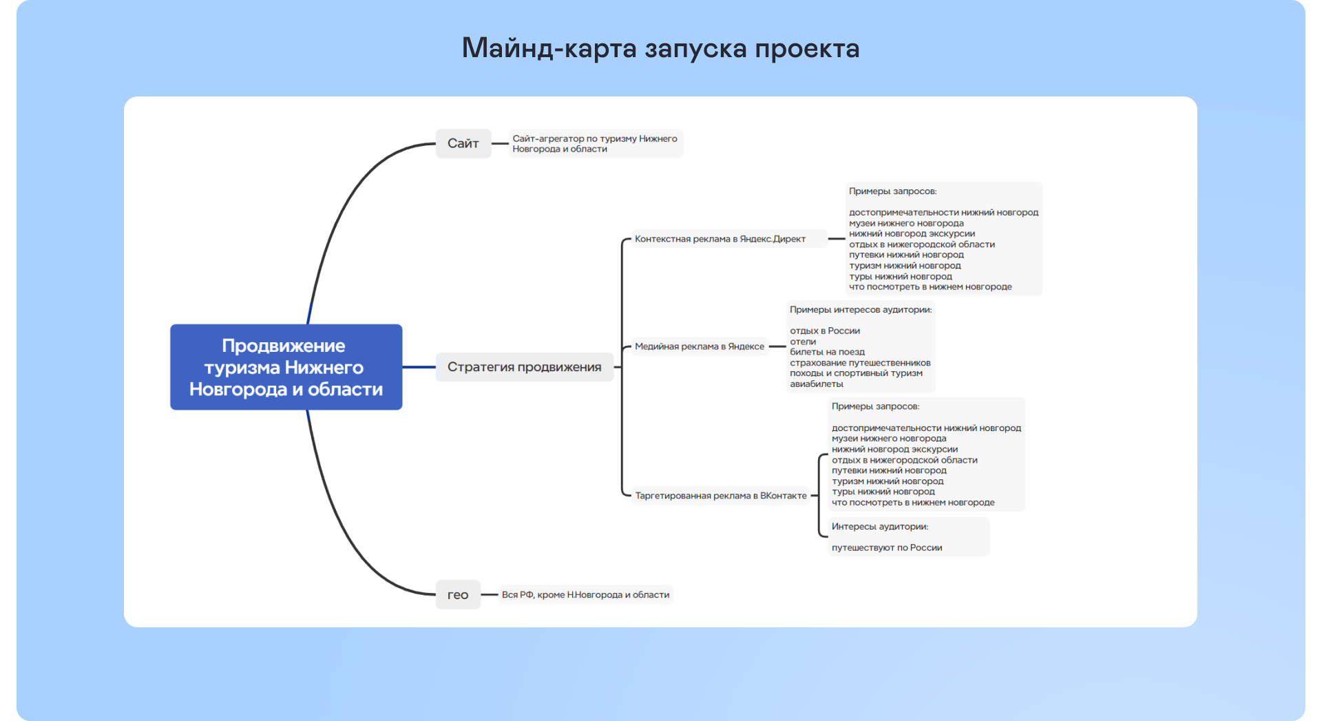 - составить план продвижения, который мы отражаем в майнд-карте для презентации стратегии.