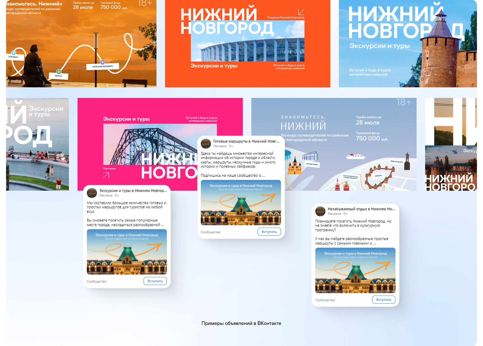 Также мы использовали настройку по географии показа, чтобы выйти на аудиторию из других регионов и пригласить на портал о путешествии в Нижний Новгород.